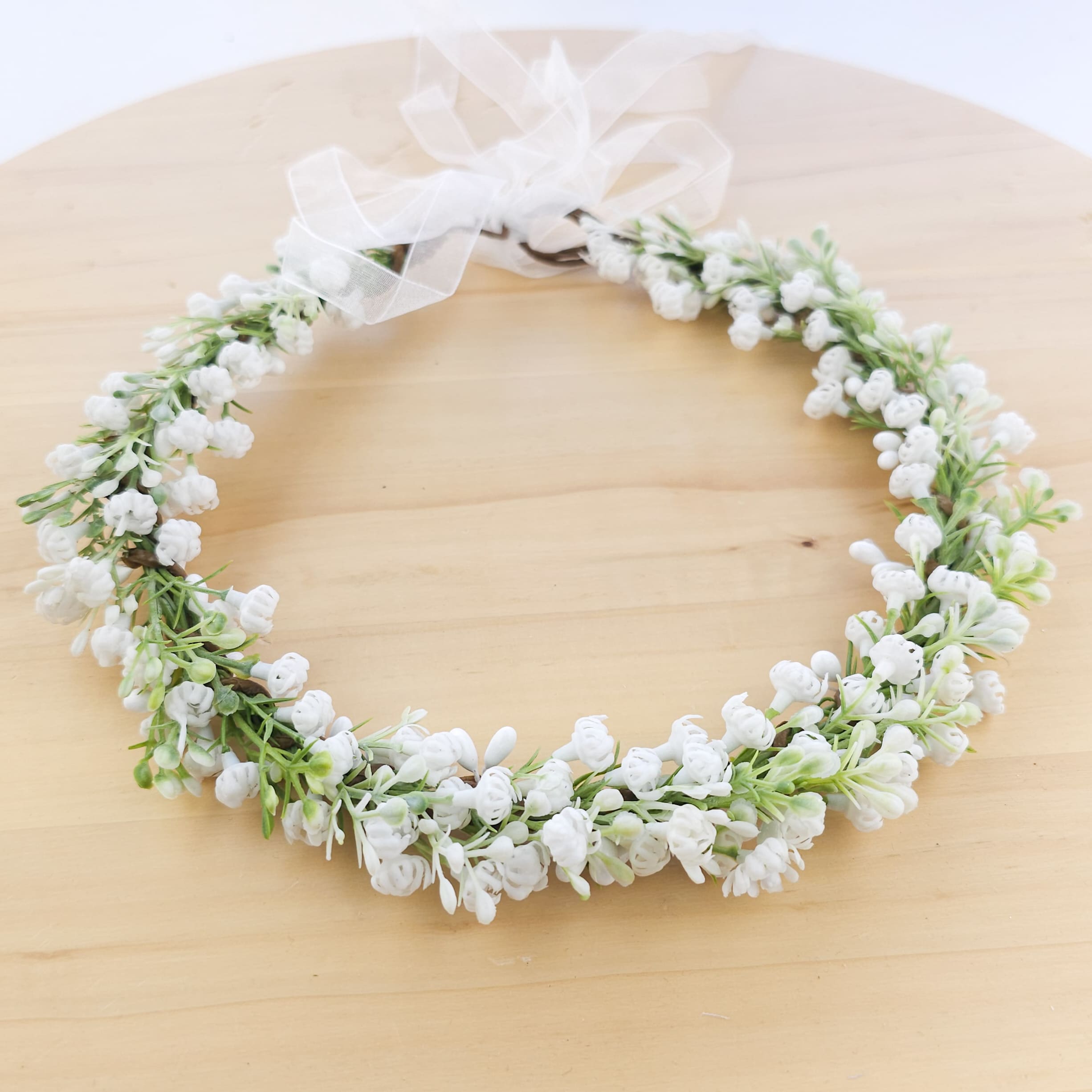 Στεφάνι με λουλούδια σε λευκές αποχρώσεις, ένα μέγεθος , καλύπτει απο 6 μηνών εώς 10 ετών