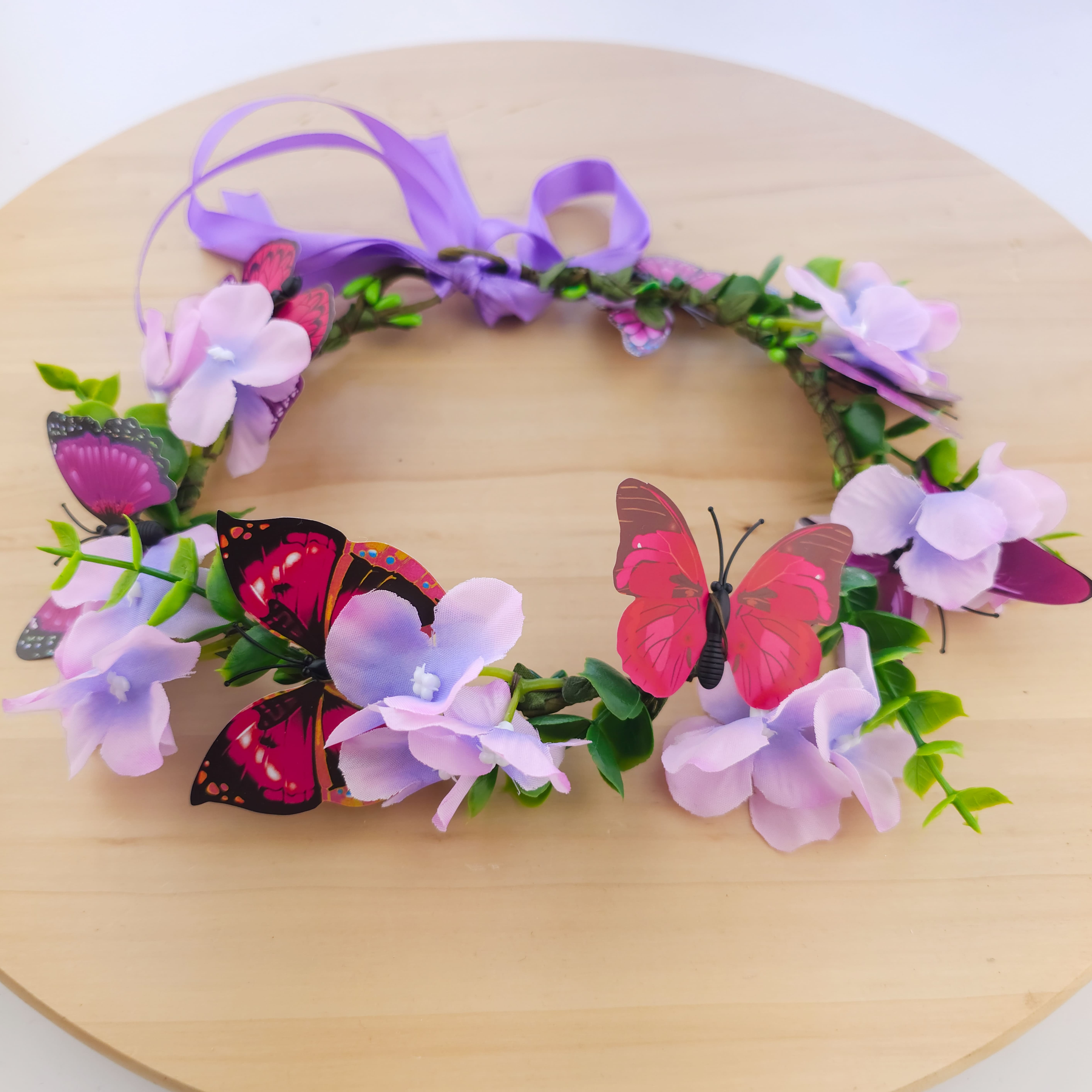 Στεφάνι με λουλούδια σε λιλά αποχρώσεις, ένα μέγεθος , καλύπτει απο 6 μηνών εώς 10 ετών