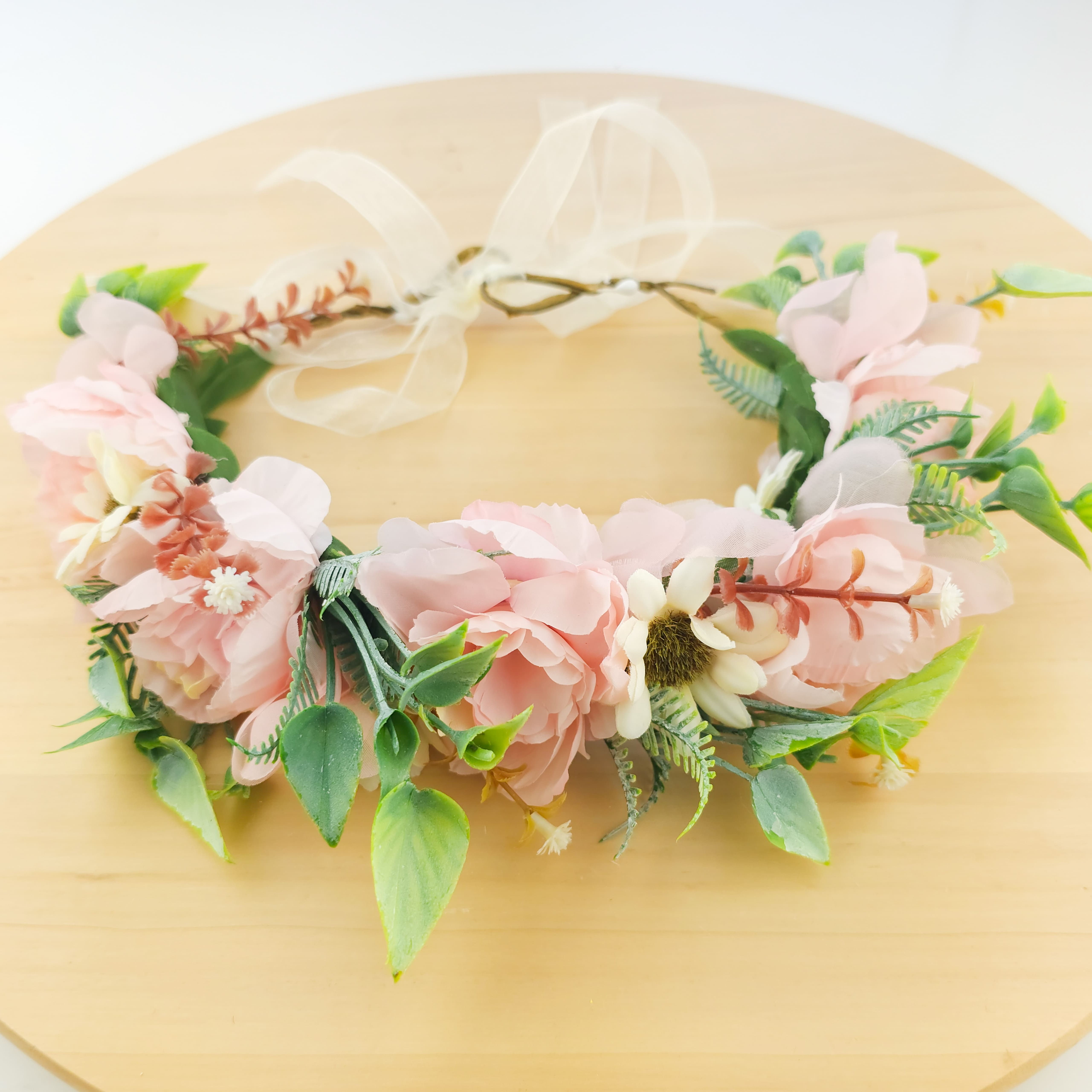 Στεφάνι με λουλούδια σε ρόζ αποχρώσεις, ένα μέγεθος , καλύπτει απο 6 μηνών εώς 10 ετών