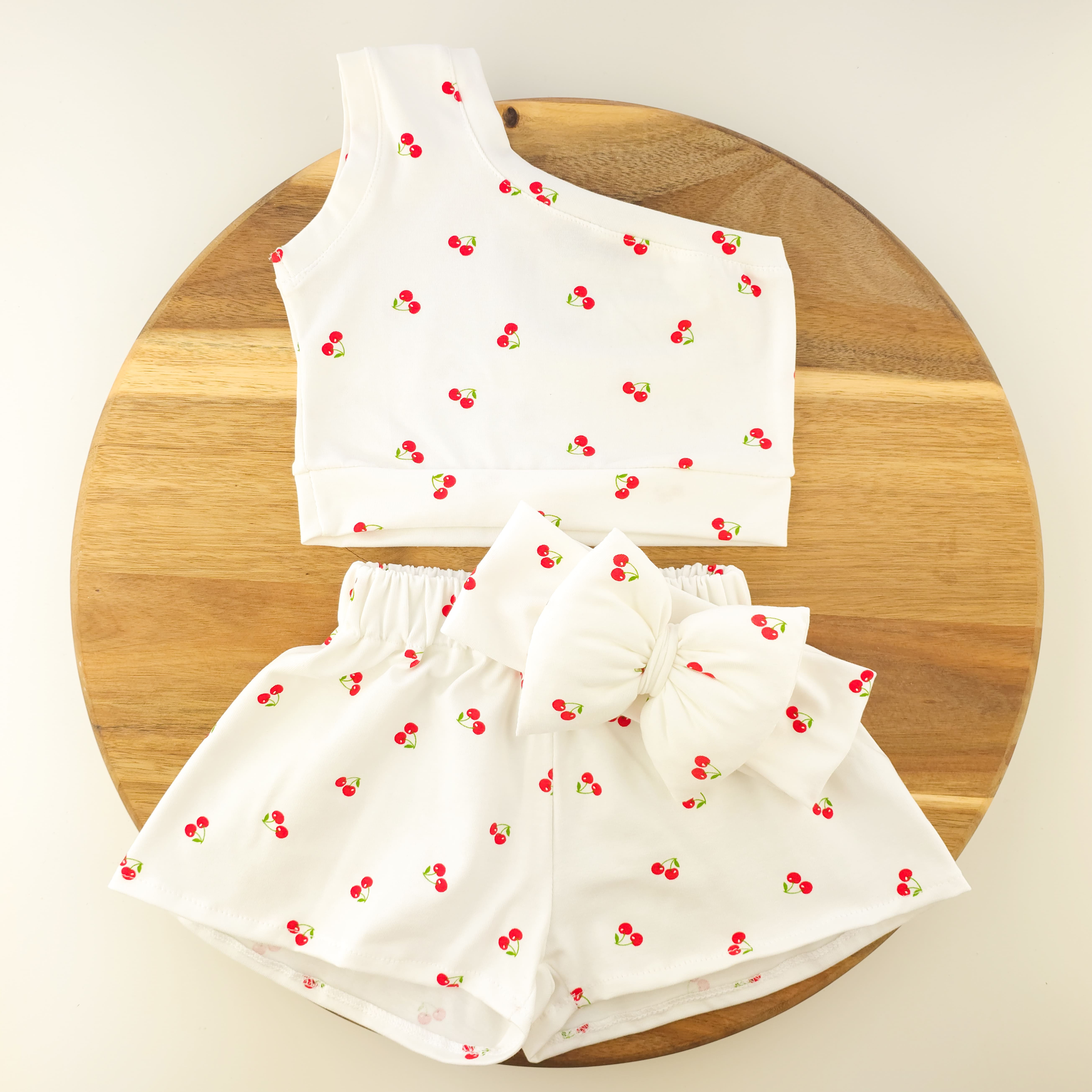 Χειροποίητο σετ ρούχων , αποτελείται απο crop top σορτς και κορδέλα ,(το αξεσουάρ μπορεί να αλλάξει)