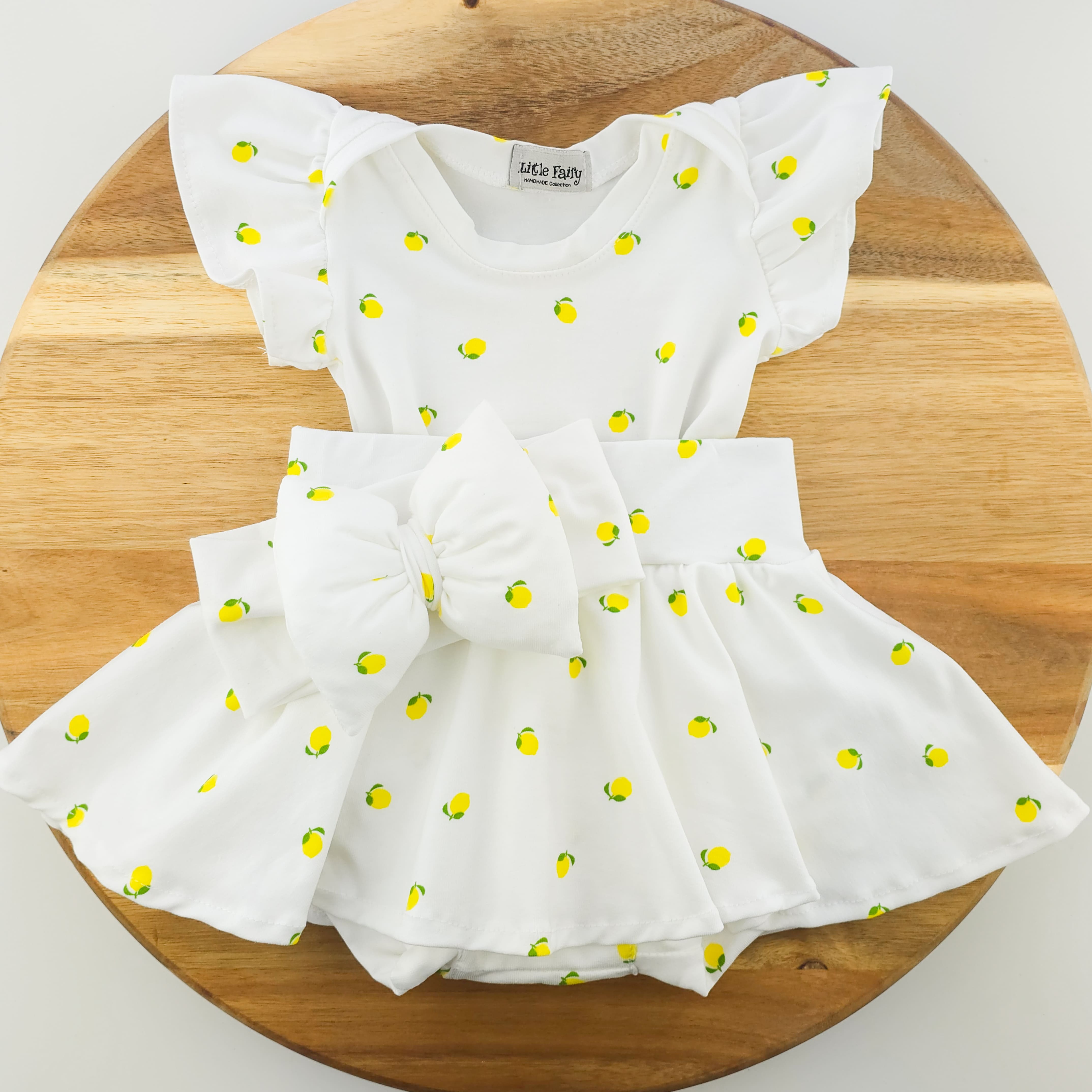 Χειροποίητο σετ ρούχων , αποτελείται απο κορμάκι, φούστα με ενσωματωμένο σορτσάκι και κορδέλα (το αξεσουάρ μπορεί να αλλάξει)