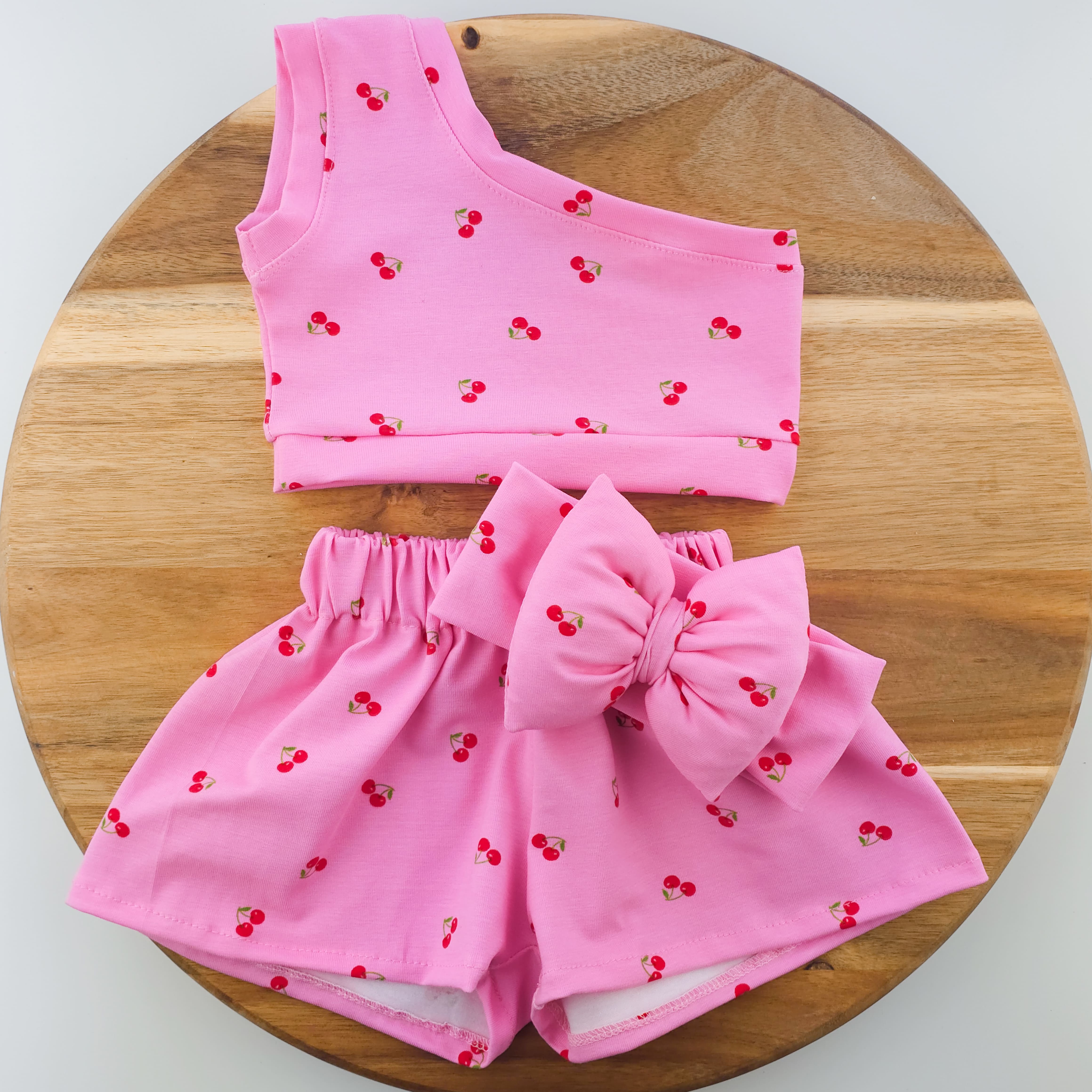 Χειροποίητο σετ ρούχων , αποτελείται απο crop top σορτς και κορδέλα ,(το αξεσουάρ μπορεί να αλλάξει)
