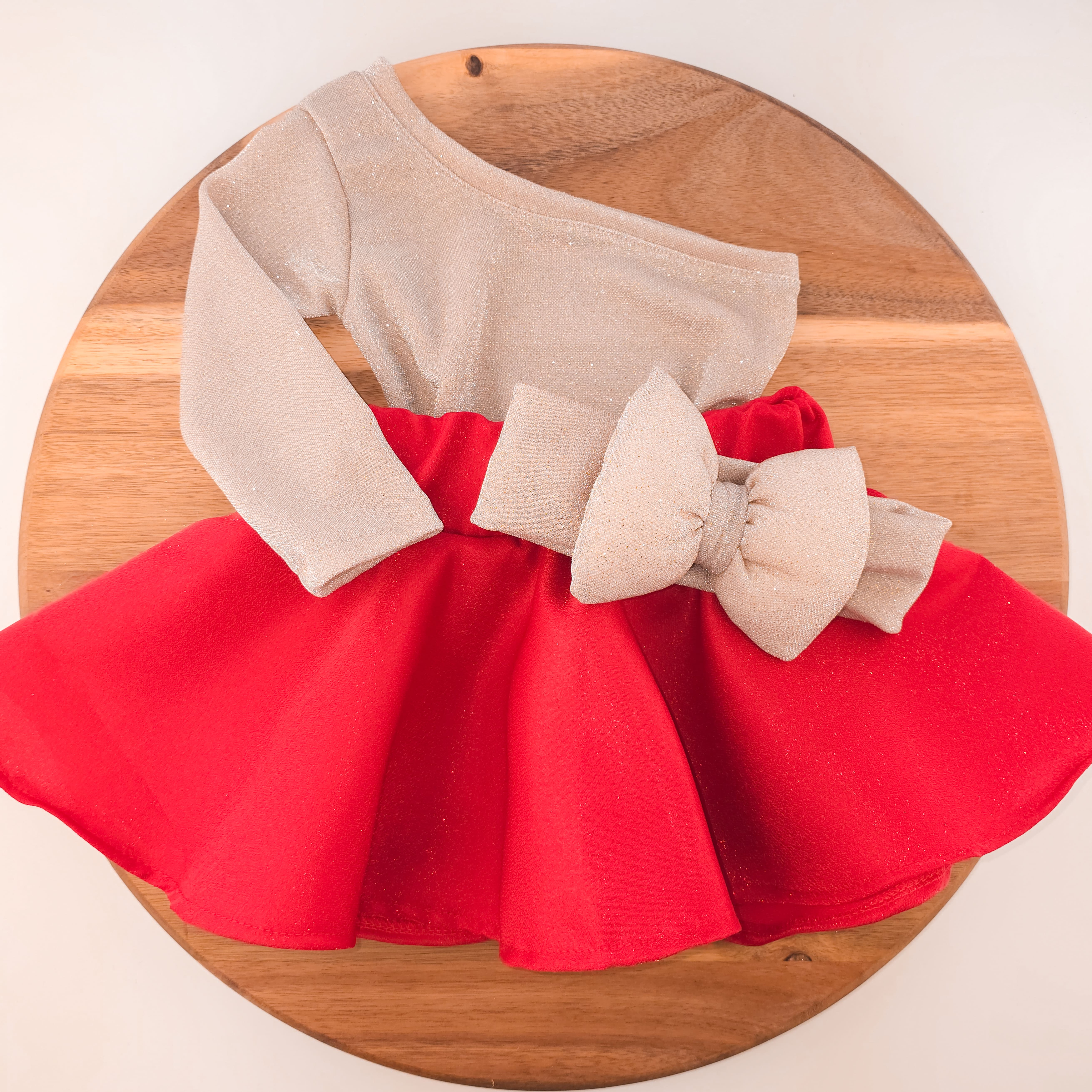Xειροποίητο σετ ρούχων , αποτελείται απο κορμάκι, φούστα με ενσωματωμένο σορτσάκι και κορδέλα (το αξεσουάρ μπορεί να αλλάξει)