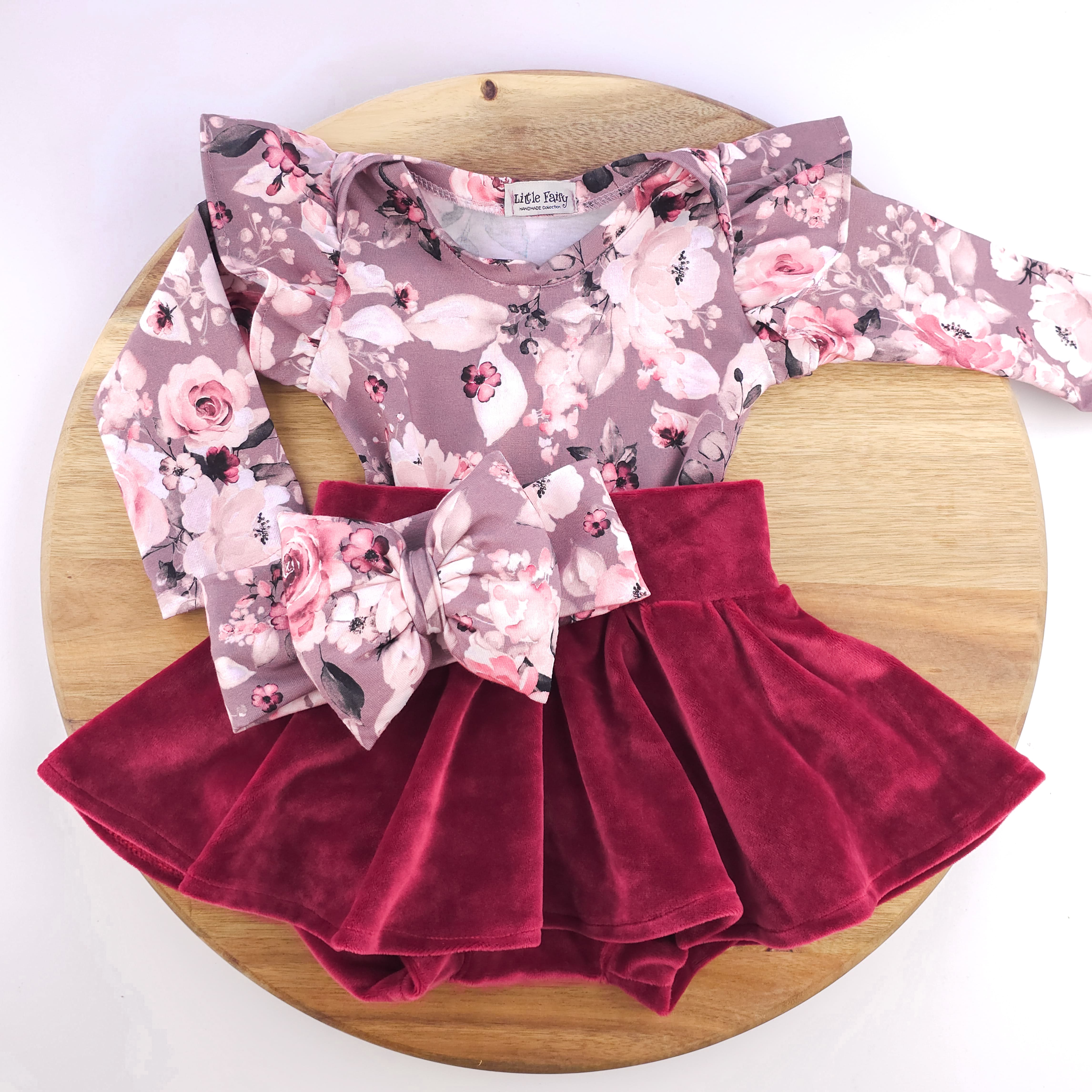 Χειροποίητο σετ ρούχων , αποτελείται απο κορμάκι, φούστα με ενσωματωμένο σορτσάκι και κορδέλα (το αξεσουάρ μπορεί να αλλάξει)