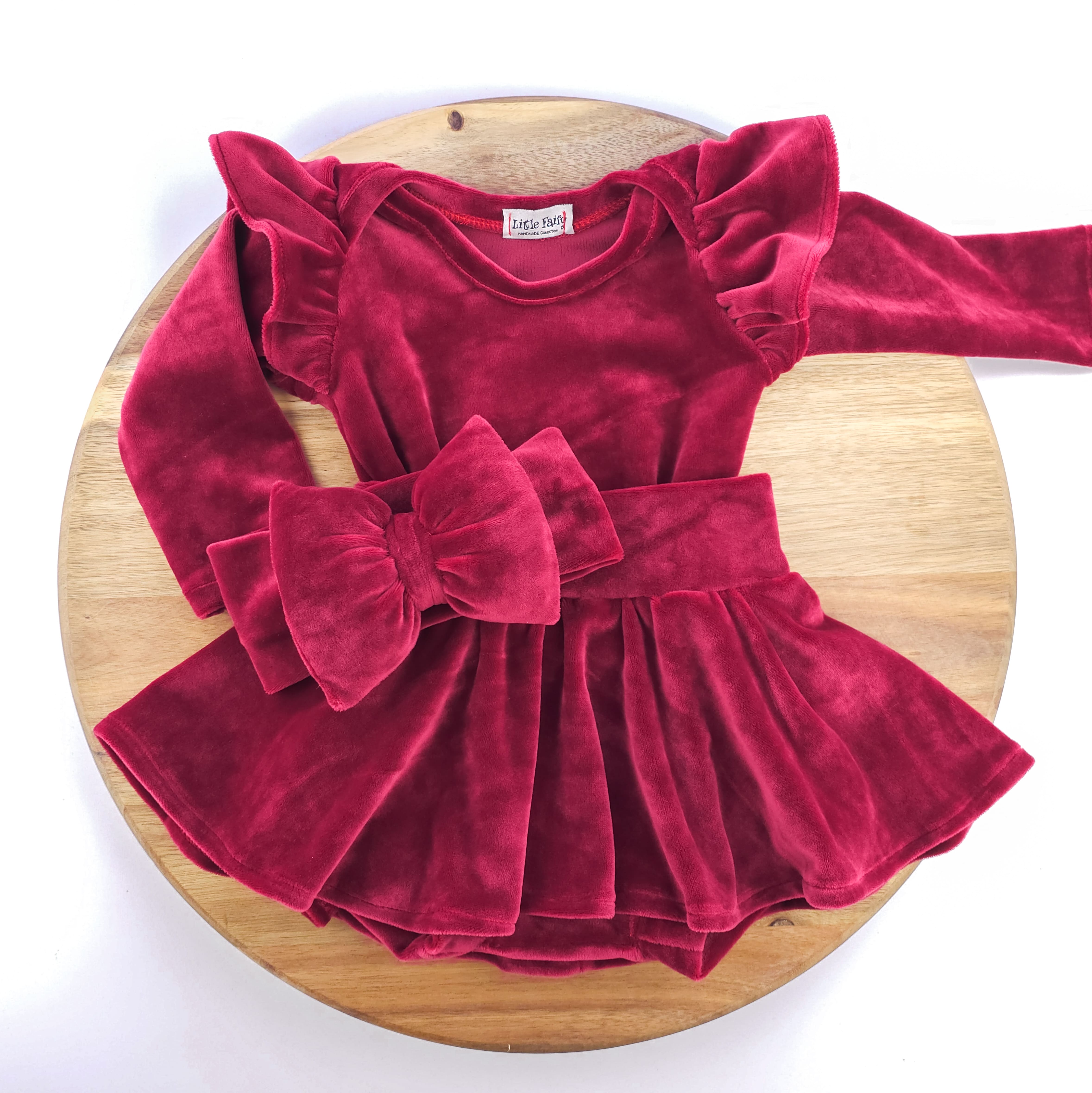 Χειροποίητο σετ ρούχων , αποτελείται απο κορμάκι φούστα και κορδέλα (το αξεσουάρ μπορεί να αλλάξει)