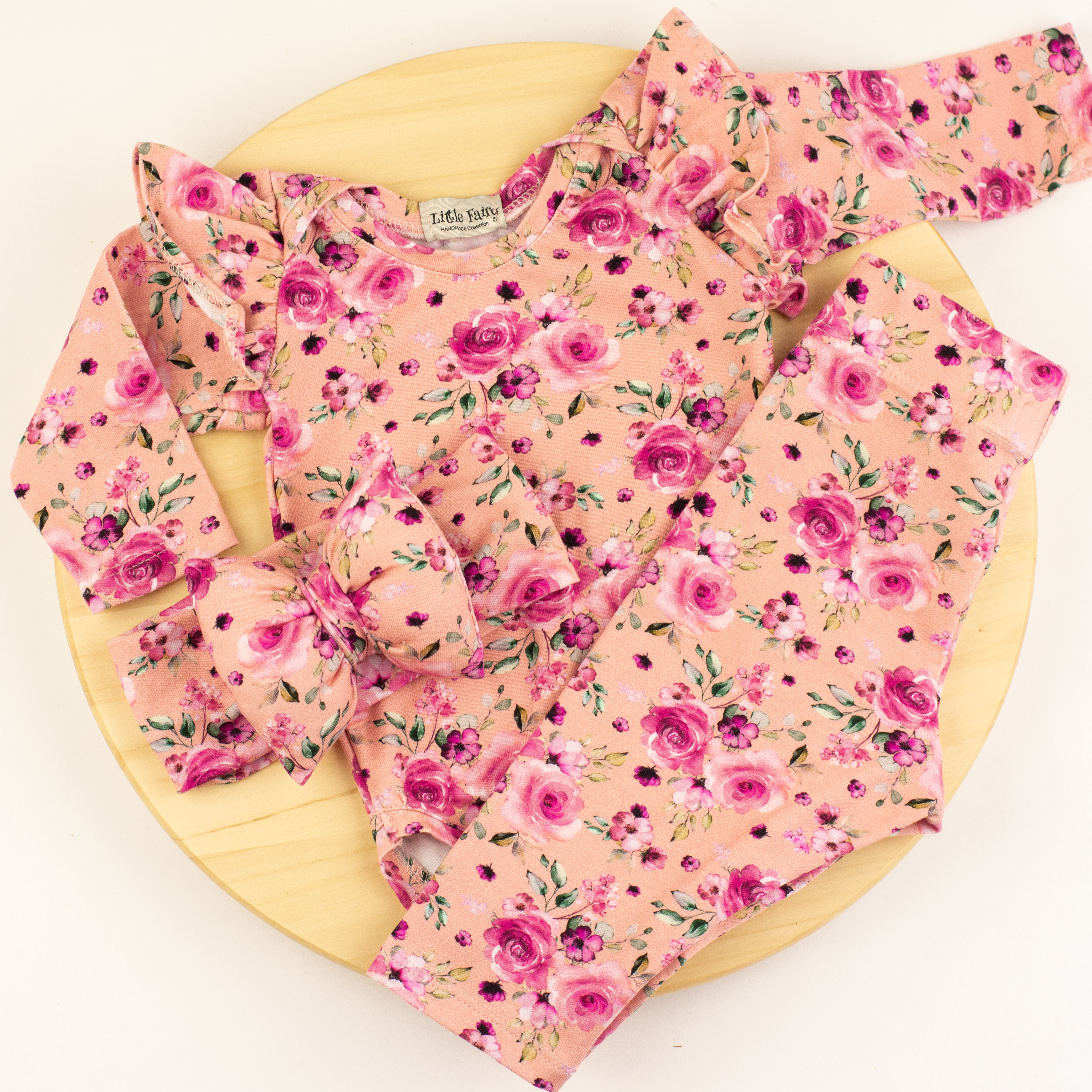 Χειροποίητο σετ ρούχων , αποτελείται απο κορμάκι κολάν και κορδέλα (το αξεσουάρ μπορεί να αλλάξει)