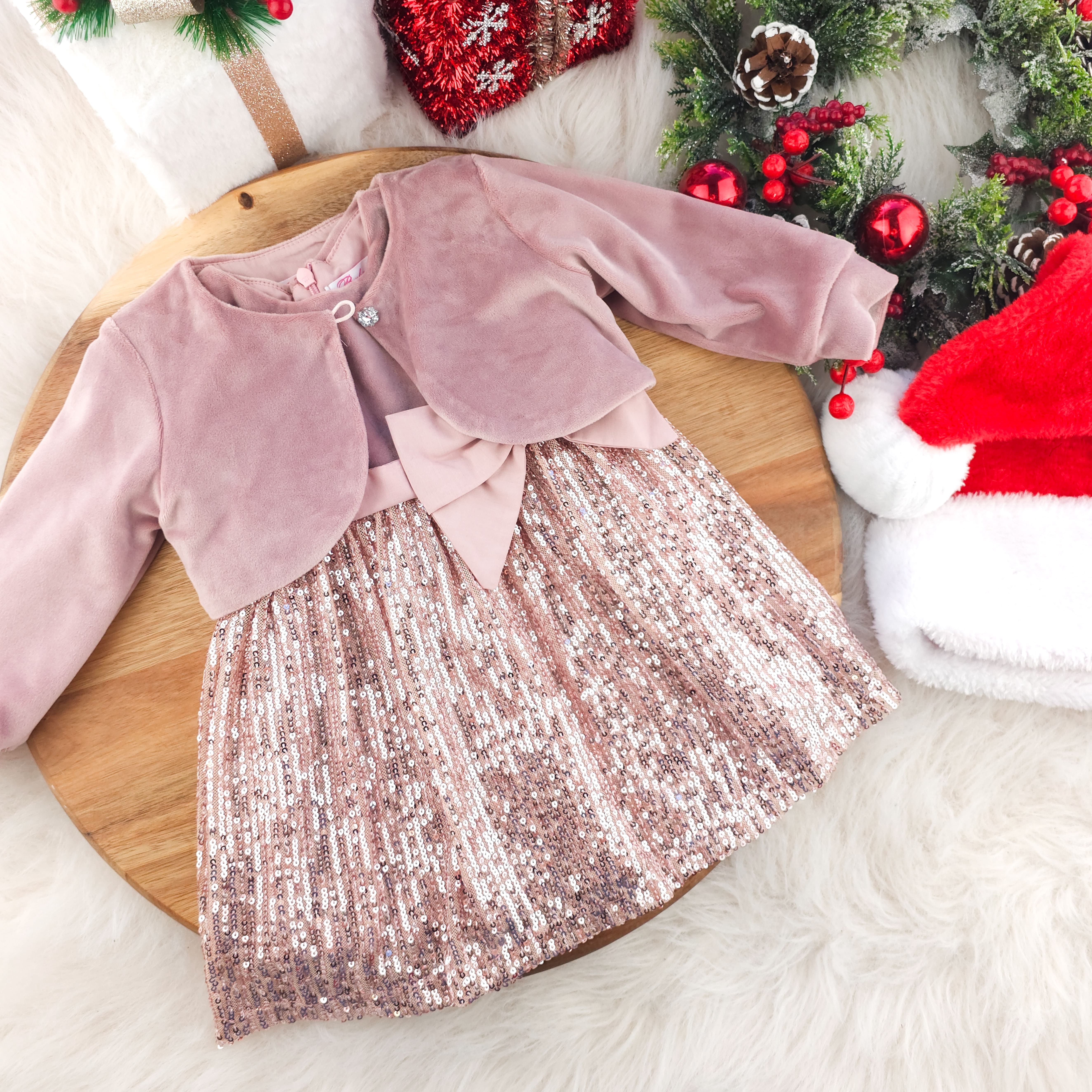 Βρεφικό φόρεμα που αποτελείται απο φόρεμα με μακρύ μανίκι και μπολερό ζακετάκι. Βαμβακερή επένδυση.